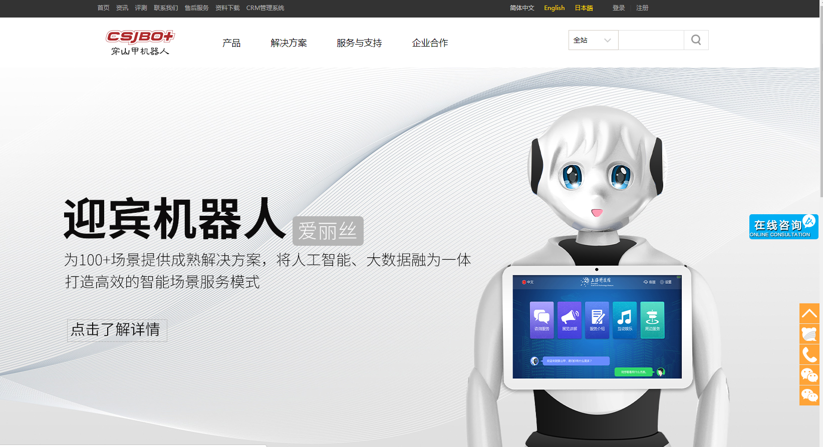 公司先后在苏州、上海、深圳、东京设立四大研发中心,拥有华东、华北近2万平生产基地,是目前国内最大的服务机器人制造商之一。产品获得欧盟CE、美国FCC、日本Telec等专业认证,已出口65个国家和地区,为全球6000多家知名客户提供服务,全球销量遥遥领先!